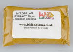 We sell Brazilwood, Cochineal, Coreopsis, Cutch, Lac, Logwood, Madder, Sorghum and Weld natural dye extracts, as well as Alum, Aluminium acetate, Tannic Acid and Cream of Tartar etc. Only Gallnut and Myrobalan now in stock. All of our dye extracts are powders, not liquids. Brazilwood, cochineal, chlorophyllin and sorghum are sold in 10 gram packs, whilst the other dyes are sold in 20 grams, as well as in 100 gram packs. We send all dye extracts worldwide (including the USA & Canada!).